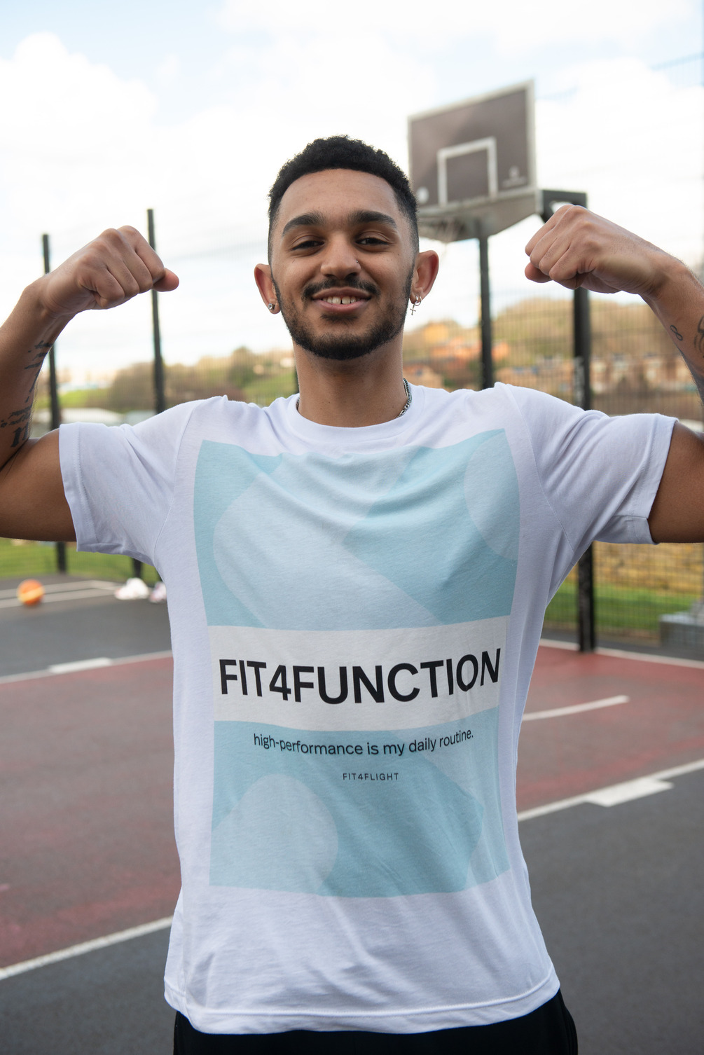 The silhouette of the “Fit4flight” T-Shirt is as light as the individual who wears it feels. With a slightly oversized sleeve to ensure a full range of motion, without a dropped shoulder to ensure a natural feel when competing, this top is designed for high-performance. And, with its light, white fit, it will outlast even you through every rep you need it to.